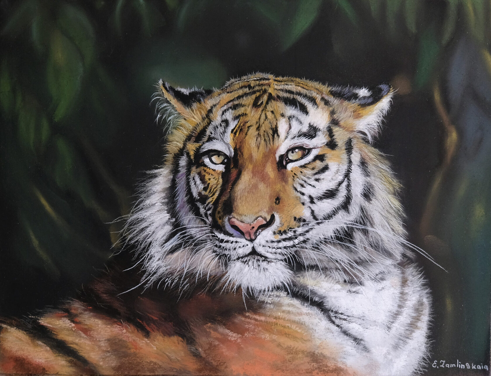 "Амурский тигр", пастель, бумага, 30 × 40 см