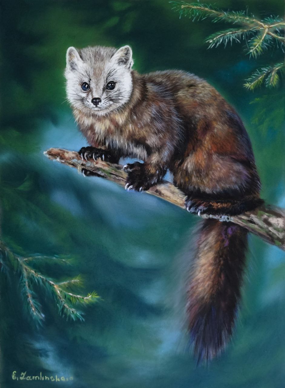 "Баргузинский соболь", пастель, бумага, 40 × 40 см