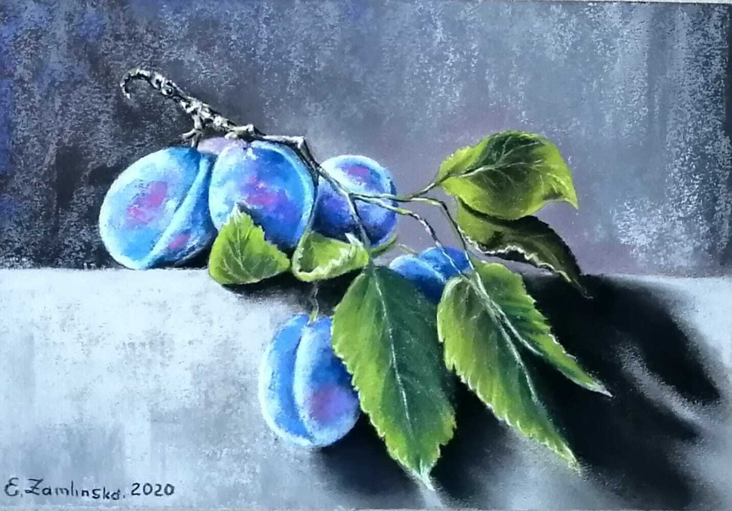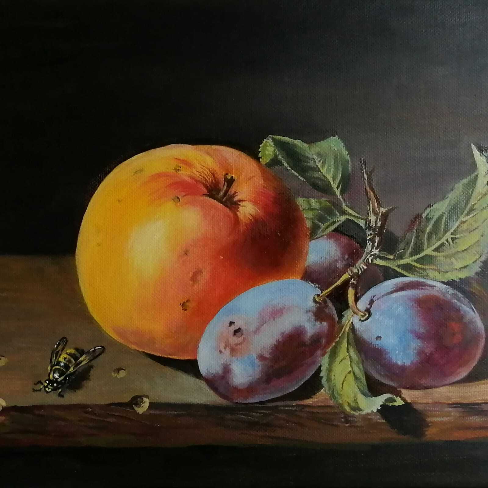 "Натюрморт с яблоком и сливами", холст, масло, копия работы
