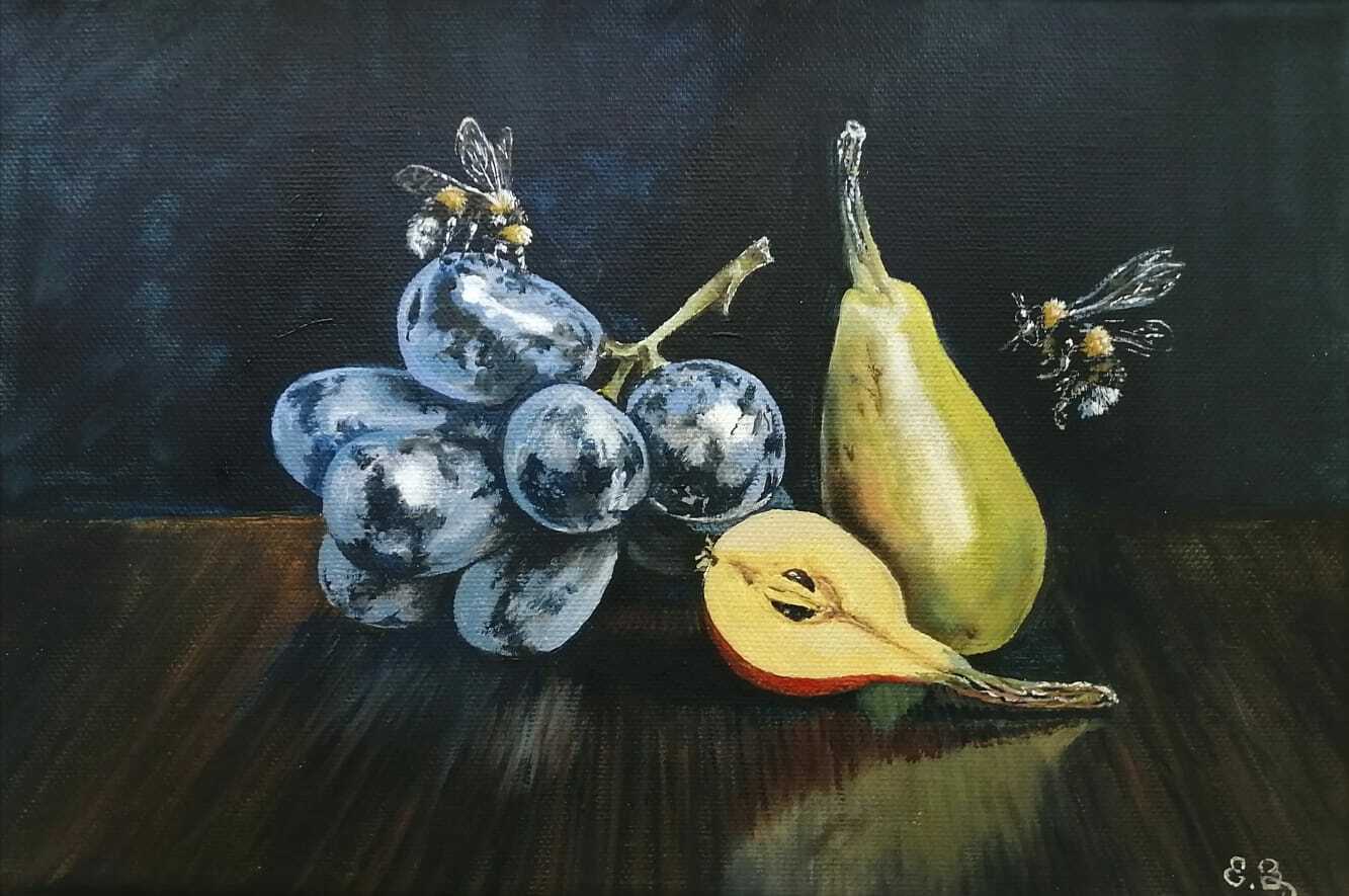 "Виноград и груши", холст, масло, 20 × 30 см